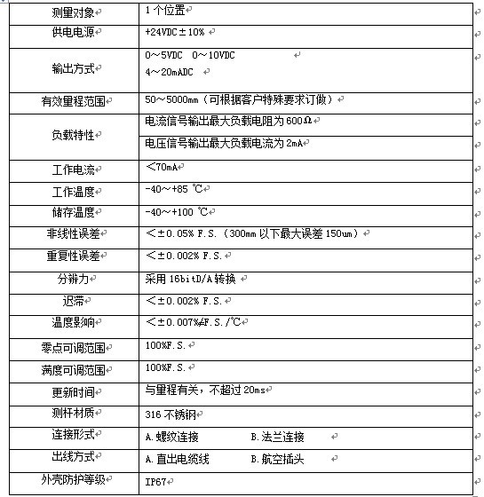 HDM-F系列磁致伸縮液位傳感器采用磁致伸縮原理制造的高精度、長量程線性、絕對位置測量的液位傳感器,可以精確測量容罐液面的位置。供電方式靈活,接線方法多種且極為方便,可滿足各種測量、控制、檢測的要求;采用非接觸測量方式,解決了因磨擦、磨損等造成的使用壽命低的問題。該傳感器性能高,壽命長,有良好的環(huán)境適應性、可靠性和穩(wěn)定性,安裝簡單,為用戶使用帶來極大的方便。